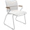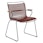 Esszimmerstuhl von Houe mit einem ergonomischen Sitz mit abnehmbaren Lamellen aus Plastik. Er hat einen starken, leichten Rahmen aus schwarzem pulverbeschichtetem Stahl mit kontrastreichen Armlehnen aus Bambus.